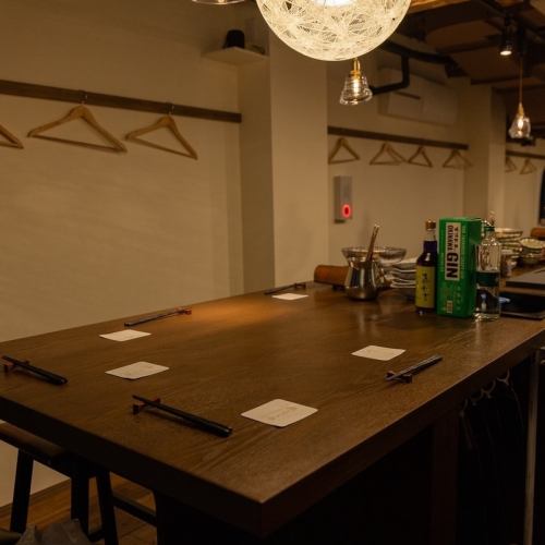 テーブル席は中央にパーテーションを設けており、半個室のようなプライベート空間でお食事を楽しめます。周りを気にせず、ゆったりと会話や食事を楽しめるため、デートや記念日、友人との食事にもぴったりです。グループでの利用も可能で、落ち着いた雰囲気の中、特別感のある時間を過ごせる空間となっています。