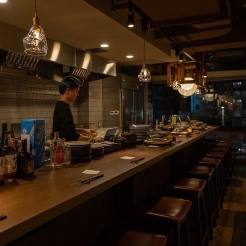 【錦糸町駅から徒歩2分】アクセス抜群で、落ち着いた雰囲気が魅力の店内。カウンター席は、調理風景を間近で楽しめるライブ感満載の特等席です。シェフの手さばきや料理の香りを間近で感じながら食事を楽しめるので、お一人様でのご来店やデートにもぴったりです。美味しいお料理で、心温まるひとときをお過ごしください。
